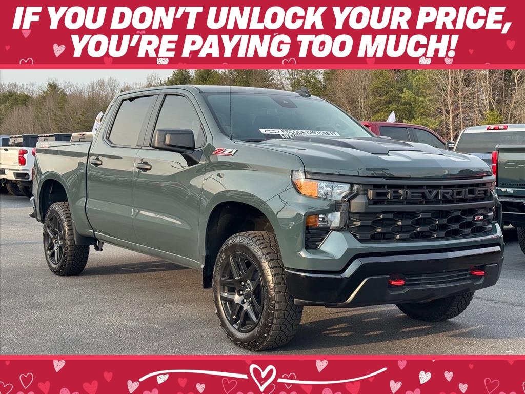 Cypress Gray 2026 Chevrolet Silverado 1500 Custom Trail Boss 4WD 10-Speed Automatic EcoTec3 5.3L V8 10-Speed Automatic, 4WD, Black Cloth.Recent Arrival!Check out all these great option's Custom Convenience Package (Electric Rear-Window Defogger, EZ Lift Power Lock & Release Tailgate, LED Cargo Area Lighting, Remote Vehicle Starter System, and Theft Deterrent System (Unauthorized Entry)), Preferred Equipment Group 2CX (10-Way Power Driver Seat w/Lumbar, 120-Volt Bed Mounted Power Outlet, 120-Volt Interior Power Outlet, 3.5 Monochromatic Display Driver Info Center, Auto-Locking Rear Differential, Bluetooth® For Phone, Color-Keyed Carpeting Floor Covering, Deep-Tinted Glass, Dual Rear USB Ports (Charge Only), Electronic Cruise Control, Front Rubberized Vinyl Floor Mats, HD Rear Vision Camera, Manual Tilt Wheel Steering Column, OnStar Services Capable, Performance Red Recovery Hooks, Power Front Windows w/Driver Express Up/Down, Power Front Windows w/Passenger Express Down, Power Rear Windows w/Express Down, Rear 60/40 Folding Bench Seat (Folds Up), Rear Rubberized-Vinyl Floor Mats, Remote Keyless Entry, SiriusXM Trial Subscription, Standard Tailgate, Teen Driver, Tire Pressure Monitoring System, and Wi-Fi Hot Spot Capable), Suspension Package (Heavy-Duty Air Filter and Hill Descent Control), Trailering Package (Hitch Guidance), 10-Speed Automatic, 4WD, Black Cloth, 170 Amp Alternator, 220 Amp Alternator, 4-Wheel Disc Brakes, 40/20/40 Front Split-Bench Seat, 6 Speakers, 6-Speaker Audio System, ABS brakes, Air Conditioning, Alloy wheels, AM/FM radio: SiriusXM, Apple CarPlay/Android Auto, Auto High-beam Headlights, Automatic Emergency Braking, Auxiliary External Transmission Oil Cooler, Brake assist, Cloth Seat Trim, Compass, Delay-off headlights, Driver door bin, Driver vanity mirror, Dual Exhaust w/Polished Outlets, Dual front impact airbags, Dual front side impact airbags, Electronic Stability Control, Emergency communication system: OnStar, External Engine Oil Cooler, Following Distance Indicator, Forward Collision Alert, Front anti-roll bar, Front Center Armrest w/Storage, Front Pedestrian Braking, Front reading lights, Front wheel independent suspension, Fully automatic headlights, Heated door mirrors, Illuminated entry, Integrated Trailer Brake Controller, IntelliBeam Automatic High Beam On/Off, Lane Keep Assist w/Lane Departure Warning, Low tire pressure warning, Occupant sensing airbag, Outside temperature display, Overhead airbag, Overhead console, Panic alarm, Passenger door bin, Passenger vanity mirror, Power door mirrors, Power driver seat, Power steering, Power windows, Premium audio system: Chevrolet Infotainment 3, Radio data system, Radio: Chevrolet Infotainment 3 System, Rear reading lights, Rear step bumper, Rear window defroster, Remote keyless entry, Security system, Single Outlet Exhaust, Speed control, Speed-sensing steering, Split folding rear seat, Tachometer, Tilt steering wheel, Traction control, Trip computer, Variably intermittent wipers, Voltmeter, Wheels: 18 x 8.5 Black Painted Aluminum, and Wheels: 20 x 9 High Gloss Black Painted Alum. Price includes: $1500 - Chevrolet Bonus Cash. Exp. 03/02/2026 $3250 - Chevrolet Consumer Cash Program. Exp. 03/02/2026